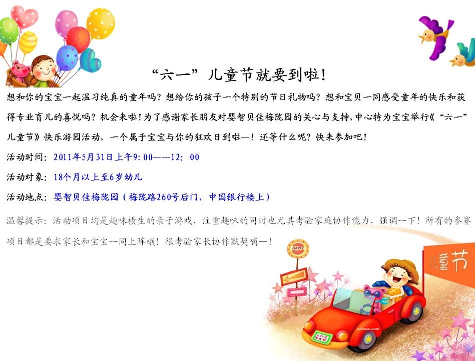 活動(dòng)時(shí)間:2011年6月1日(星期三)上午9:00----11:30