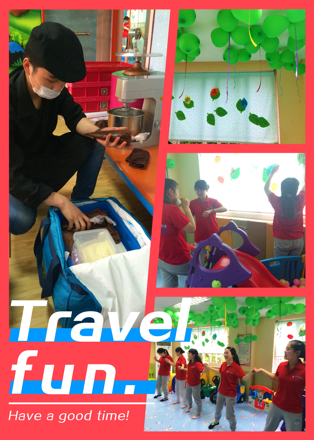 快看!準(zhǔn)備活動(dòng)從下午就井然有序的進(jìn)行著。老師們在忙著布置現(xiàn)場環(huán)境,看到房頂?shù)膼坌臍馇蛄藛?,都是一個(gè)一個(gè)吹出來扎上彩帶,是不是把節(jié)日氣氛點(diǎn)綴地更喜慶了?Party當(dāng)然少不了蛋糕啦,活動(dòng)當(dāng)天特別邀請了專業(yè)的蛋糕師,還是小鮮肉哥哥一枚呢,謝謝小師傅的高超手藝為我們準(zhǔn)備了美觀可口的巧克力蛋糕!