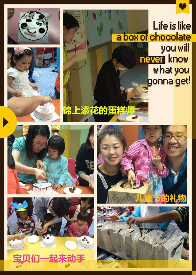 最后,有請蛋糕師出場,現(xiàn)場,蛋糕師為大家演示了如何在蛋糕上制作漂亮的花紋,然后爸爸媽媽和寶寶一起來完成制作蛋糕。萌寶們聚精會(huì)神地開始用巧克力和水果裝扮自己的蛋糕,他們奇思異想將各種想象力發(fā)揮地淋漓盡致呢。