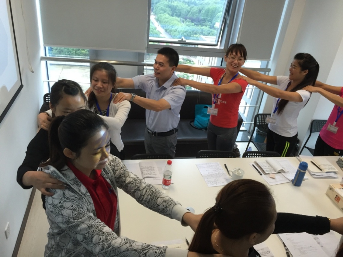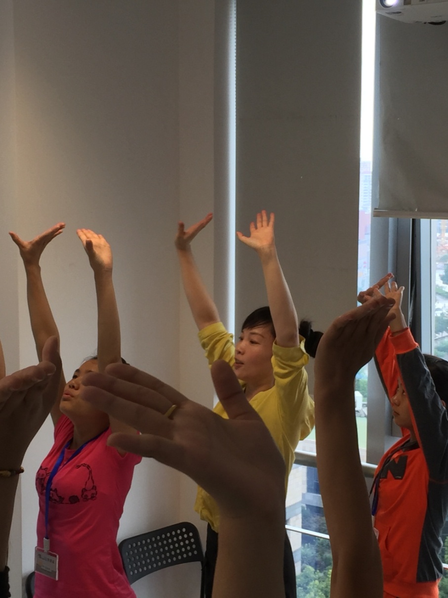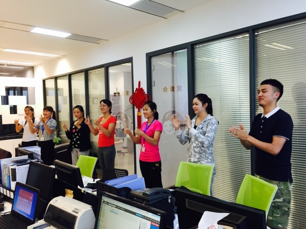 圖為南寧園的團(tuán)隊(duì)在管理老師的帶動(dòng)下,培訓(xùn)現(xiàn)場(chǎng)和氣融融的氛圍感染了每個(gè)人: