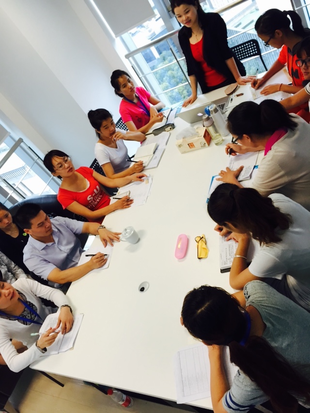 培訓(xùn)部的小貝老師在對(duì)接下來將參加為期一個(gè)月的培訓(xùn)工作的南寧園老師們提一些注意事項(xiàng)及要求: