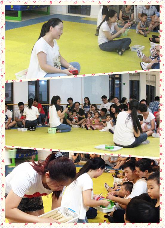炎熱的夏天到了,嬰智貝佳早教中心老閔行園的老師們結(jié)合夏日的特點(diǎn)設(shè)計了主題為《開心一夏生日party》的活動方案來為六月份生日的小朋友們舉行慶祝活動。引導(dǎo)小朋友模仿小鳥的動作,了解樂器的名稱并能夠與老師和同伴進(jìn)行音樂互動,通過脫襪子游戲加深家長和寶貝們的默契和感情;使6-9月份生日的小朋友在同伴的祝賀中愉快地慶祝;感受大家對他們的關(guān)愛;讓他們知道歡樂與人一起分享是非常幸福的。