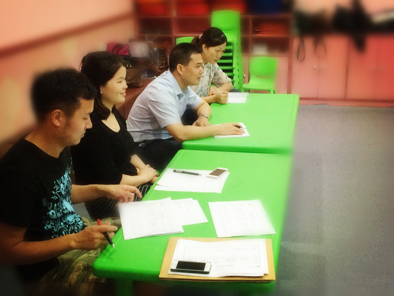 懷著緊張與喜悅的心情,終于到了檢閱成果的日子了。在這一個月中,雖然派來的老師層次不齊,有的甚至是一張白紙,只是帶著一份對工作的憧憬與熱忱義無反顧地投入其中,在這整個過程中,我們能感受到這份執(zhí)著這份期盼,正因為如此,總部的培訓老師也是冒著酷暑一遍一遍進行指導,不厭其煩的糾正錯誤,耐心地總結問題給予解答,南寧園的師資培訓取得了很大成功,接下來帶大家去看看當天南寧園老師考試的現(xiàn)場。