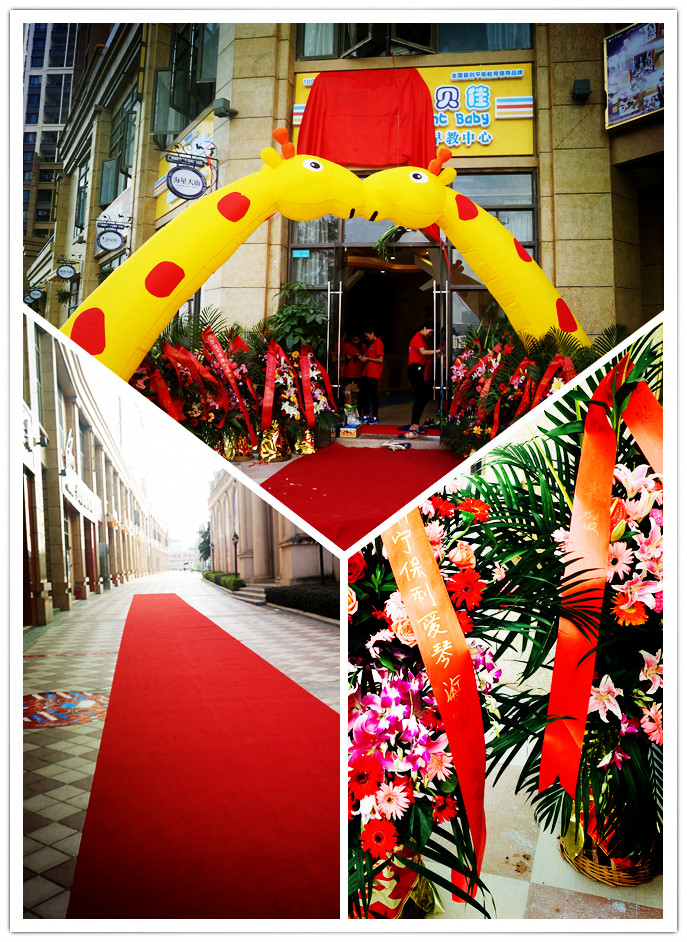 風(fēng)和日麗,活動現(xiàn)場準(zhǔn)備完畢,門口鋪設(shè)紅地毯并擺滿來自五湖四海的朋友們的祝?;ɑ@: