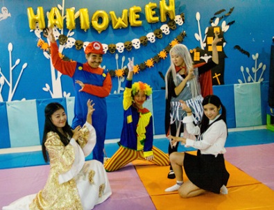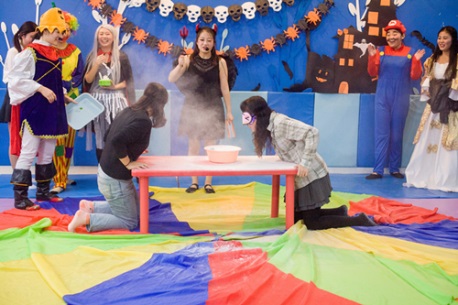 這次節(jié)目主持人是軒軒老師,宣布了萬圣節(jié)晚會正式開始!第一個節(jié)目是老師們的出場秀,里面有超級瑪麗,白雪公主,小丑,百變小櫻還有波利王子哦。