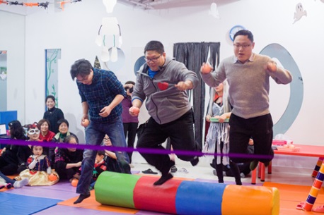 哈哈哈,玩這個游戲的家長們也是需要點勇氣的呢!