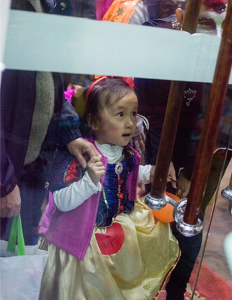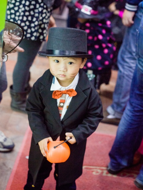 最后進入討糖環(huán)節(jié)啦,我們領著寶寶們分別到周圍的商家店里去討糖,并打著口號“給糖給糖就給糖,不給糖就搗蛋!”