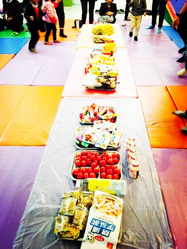 好玩的游戲結(jié)束了,小肚子有點(diǎn)餓了,哇!小桌子上面有好多的小零食??!