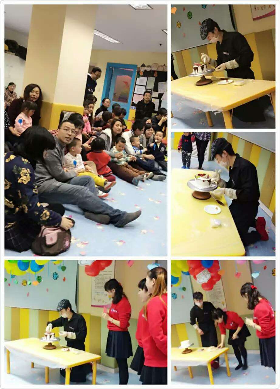 當(dāng)天現(xiàn)場還特地請來專業(yè)蛋糕師傅給大家演練制作蛋糕過程,因?yàn)榻酉聛硪粋€環(huán)節(jié)就是每一個家庭都要自己學(xué)著制作一個創(chuàng)意生日蛋糕。你瞧,家長及寶貝們都在認(rèn)真觀摩哦!