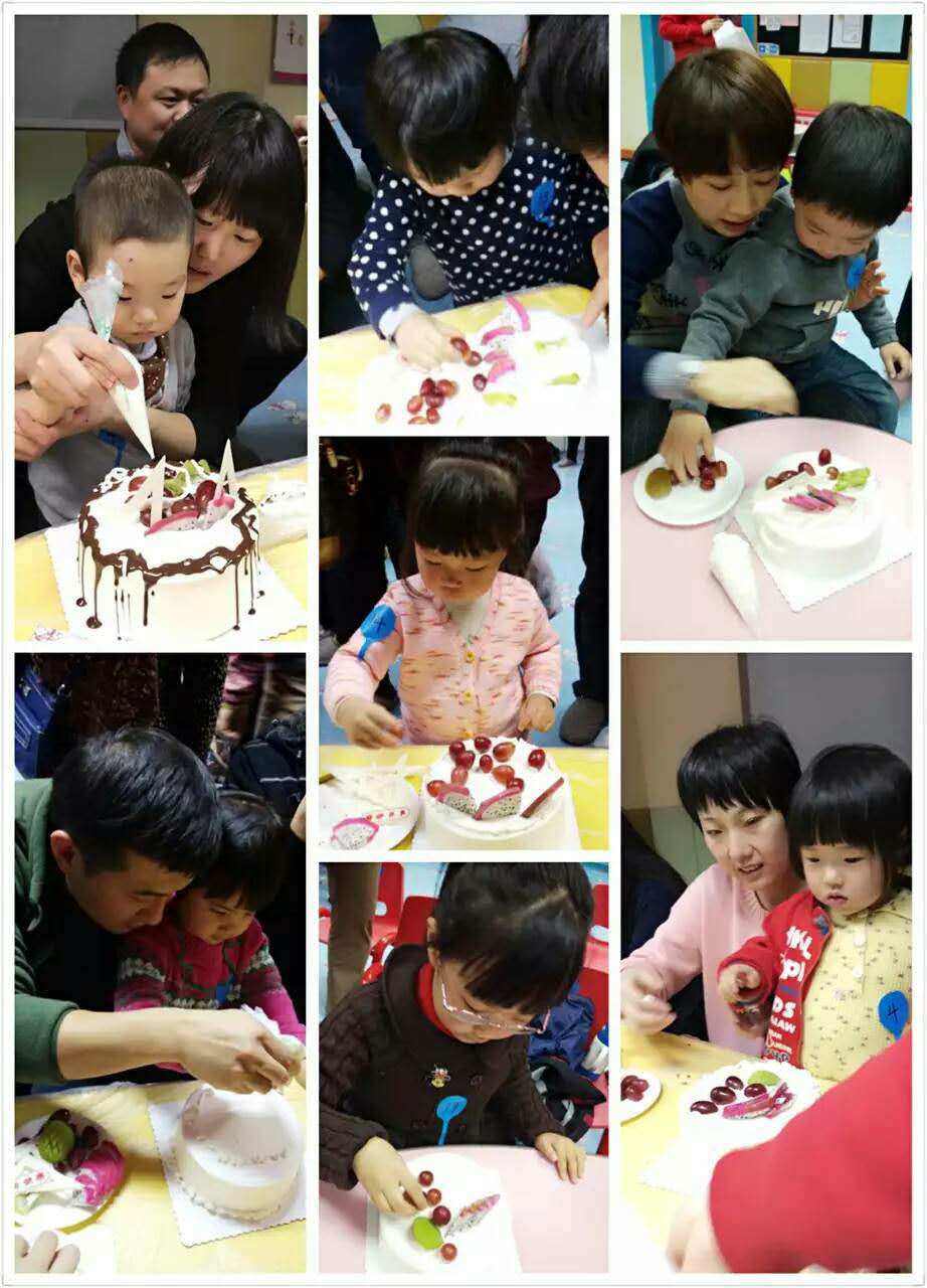 OK,屬于寶貝們的DIY蛋糕創(chuàng)意show time到了,在爸爸媽媽的幫助下,完成了自己動手制作生日蛋糕的首秀。