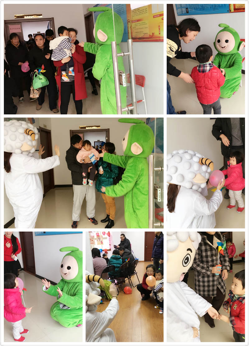 咦 瞧?什么在等著我們?老遠(yuǎn)處就看見了喜洋洋和天線寶寶在門口的等候。老師們帶著大家一起跳開場舞《大家一起喜洋洋》。熱鬧的音樂,帶著大家進(jìn)入過年的氣氛。