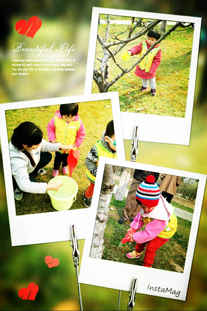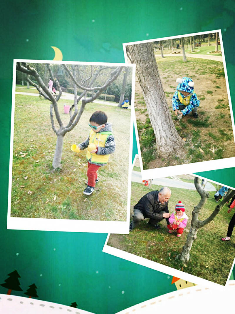 看我們的寶寶是不是特別勤勞呢,自己澆樹的時候,還在不停的給爸爸媽媽講解要愛護樹木,愛護每一片綠色。