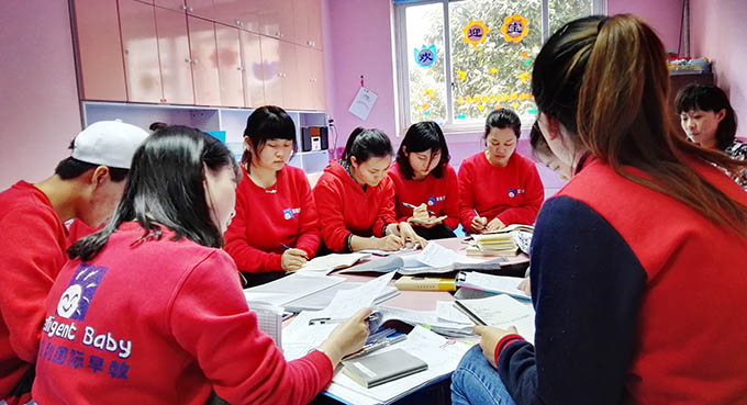 對(duì)上一周課程教學(xué)中遇到的問題予以討論解決,對(duì)新的課程和本周準(zhǔn)備教學(xué)的課程進(jìn)行研究和溝通探討,教師精英也會(huì)分享更好的育兒和教學(xué)方法。
