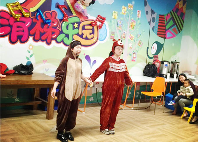 接下來是最精彩的舞臺劇環(huán)節(jié)了,看我們老師們帶來的“兩只笨熊”,演的是不是很好笑啊!兩只笨熊為了搶面包搞得誰也沒吃到多少,最后它們明白了應(yīng)該大家一起分享,小熊們是不是很棒啊!