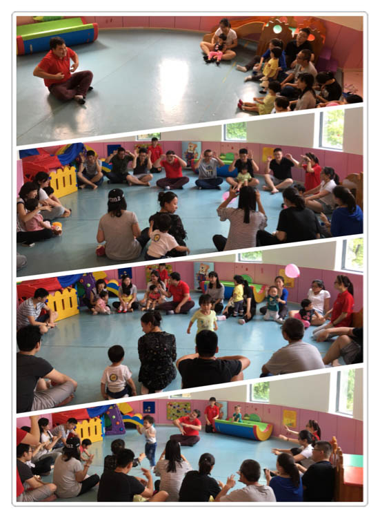 最后的環(huán)節(jié)是由我們嬰智貝佳的資深老師為現(xiàn)場(chǎng)的家庭安排了一場(chǎng)音樂(lè)啟蒙體驗(yàn)課,在場(chǎng)的每一個(gè)家庭都很配合很開(kāi)心