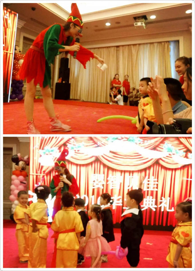 小朋友的節(jié)目告一段落,咦~會變魔術的小丑來啦~小丑的表演讓小朋友們目不轉睛~都看得可認真啦~