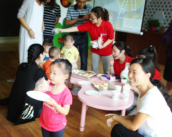 舞臺劇結(jié)束了,就到了大家萬分期待的品嘗月餅環(huán)節(jié)了。嬰智貝佳專程邀請了專業(yè)面點師為大家準備了現(xiàn)烤月餅,月餅香噴噴,小寶貝們都忍不住流口水了呀。