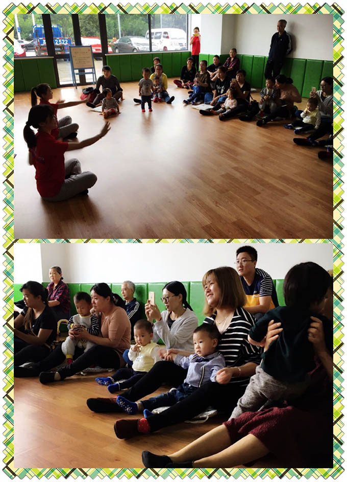 咦,是什么節(jié)目這么吸引人?看寶寶們這么認真,媽媽們都忍不住拿起手機不停地拍照呢?哦~原來是老師帶來的“What is dancing”的可愛舞蹈~