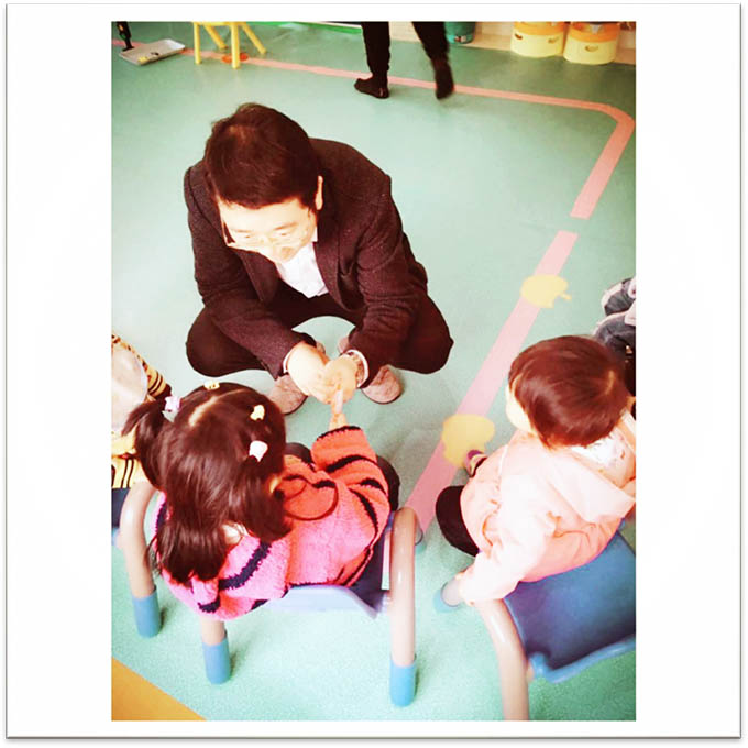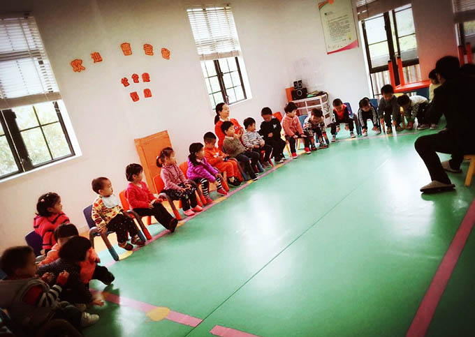 快看,小朋友們已經(jīng)坐在小板凳上等待著”爸爸”的到來。
