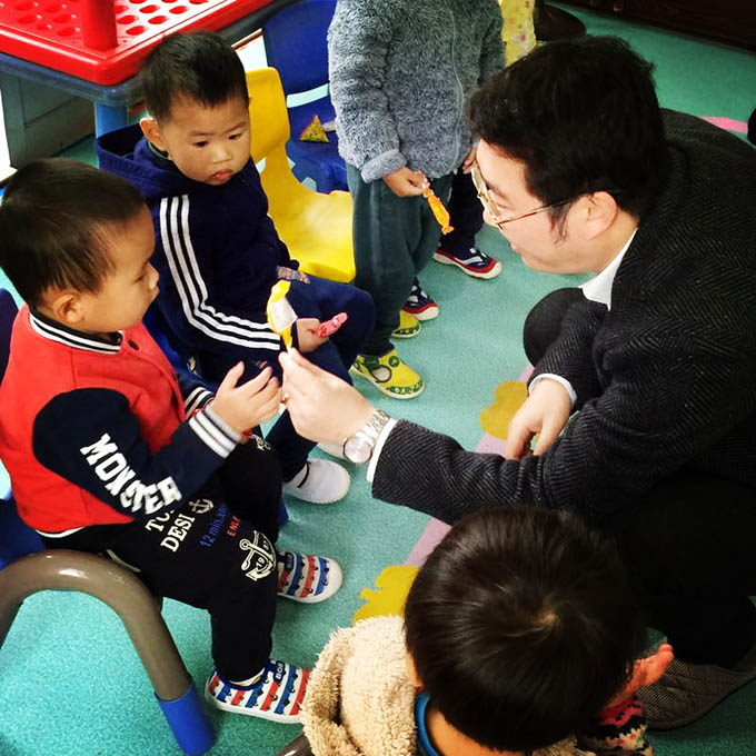 瞧!曹爸爸正在給小朋友們分發(fā)糖果和小汽車呢~