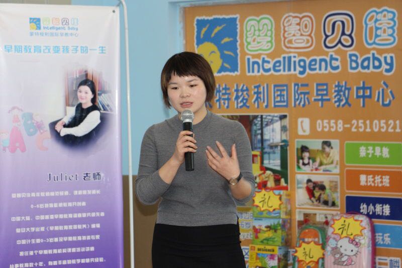 1月14日阜陽園開園當(dāng)天園所熱鬧非凡,很多家長都帶寶貝過來體驗(yàn)早教的快樂,我們也在開園當(dāng)天邀請到中國早期教育專家Juliet老師進(jìn)行名為《解讀孩子一生》的專家講座,很多家長聽了講座之后受益匪淺,對于幼兒教育方面也有了更深及更新的認(rèn)識,阜陽園的所有家長非常感謝Juliet老師的指導(dǎo),家長們也在一定程度上更加認(rèn)可了嬰智貝佳的教育,肯定了嬰智貝佳國際早教在全國早期教育界的居高地位!嬰智貝佳阜陽園也將不負(fù)眾望,竭盡全力帶給阜陽的孩子更健康更完美更富有意義的早期人生!