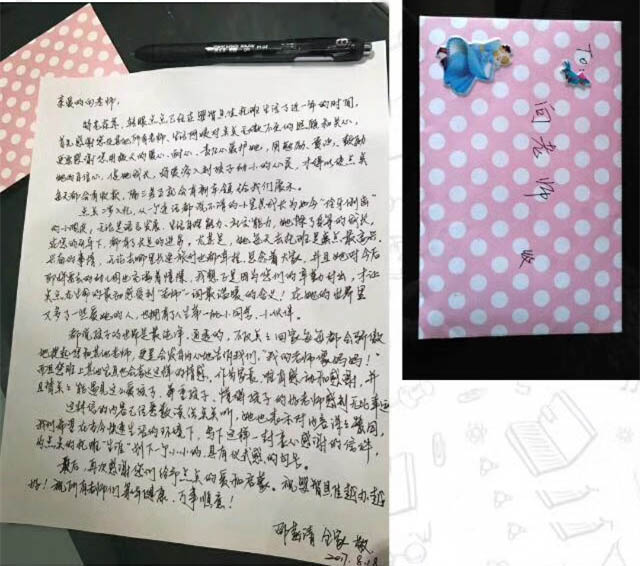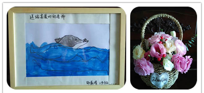 這一幅畫,一籃花,一封信,飽含了邵涵清小朋友全家人的深情厚意。