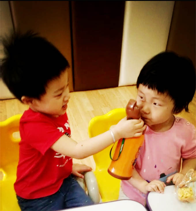 慢慢的你們學(xué)會了自己吃飯,喝水,吃點心