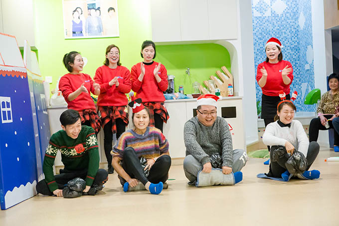 那酷炫的T臺秀之后就到了我們親子游戲的時(shí)間了。你們知道圣誕節(jié)圣誕老人是乘坐什么過來給你們送禮物的嗎?沒錯,是雪橇!那接下來我們就讓《雪橇飛起來》吧!