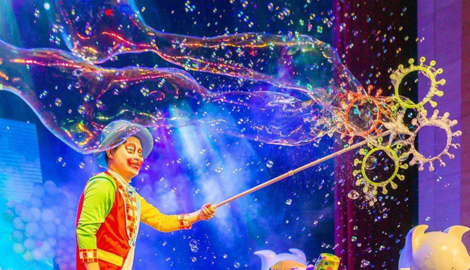 還有幽默搞笑的小丑表演和夢(mèng)幻美妙的泡泡秀。