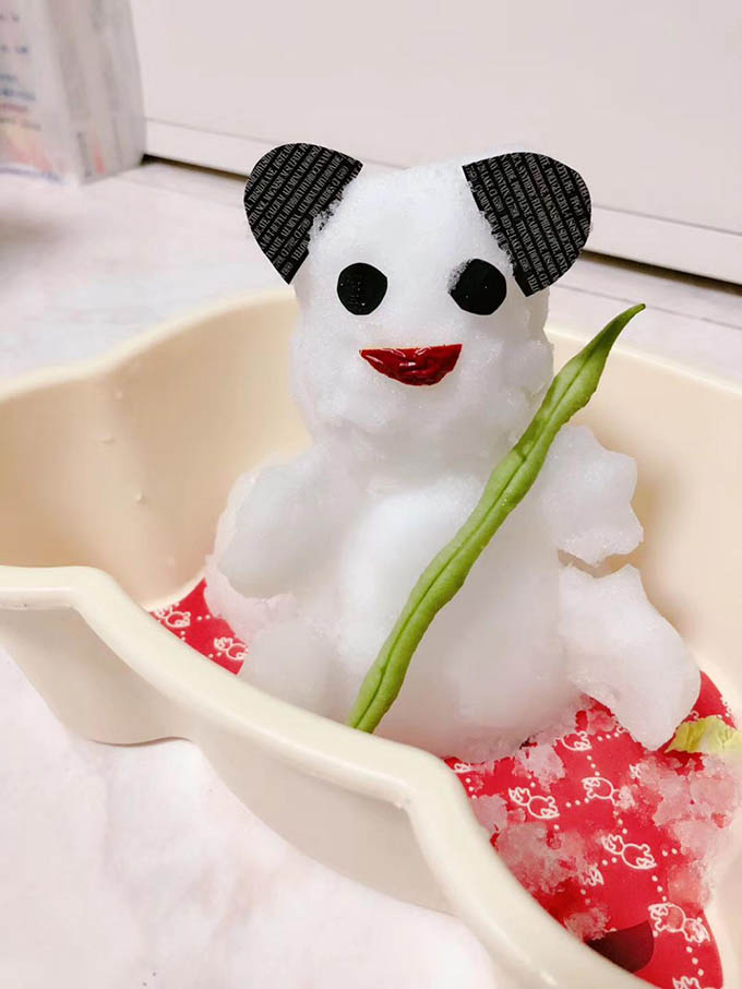 上海的冬天很冷,但雪下得不多,但去年是個(gè)例外,我們竟然堆了一個(gè)小雪人!
