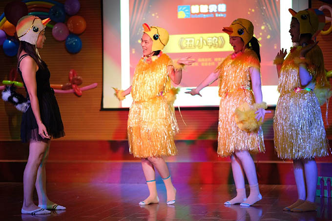 經(jīng)典舞臺劇《丑小鴨修改版》深入家長和寶貝的心,可憐的丑小鴨角色看哭很多寶貝和家長,丑小鴨因為自己的不同受到其他同伴的嘲笑和欺凌,在悲傷困境中丑小鴨依然不忘初心,一直記得我要做一個勤勞、善良、快樂的孩子;最終用他的善良感動所有人,收獲了朋友,收獲了快樂。這也是我們送給每一位寶貝的升學(xué)禮:未來我們不知道會怎么樣,希望未來的你們不管遇到多大困難都能勇敢面對,能一直保持著那一份和別人不一樣的獨特;勇敢做自己,快樂的長大。