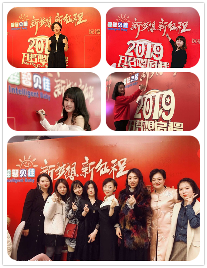 一年一度的年會,是老師們聚餐歡度的酒桌,也是脫下工作服,穿上美美的衣服展示的地方,也是表演的舞臺,各家園所都將走上舞臺獻上自己拿手的節(jié)目。來到年會會場的第一時間,就是先在題名冊簽上自己的大名,留下自己2018在嬰智貝佳一年的印記。然后 可以在祝福墻前美美的拍個照,留下暖暖的祝福。