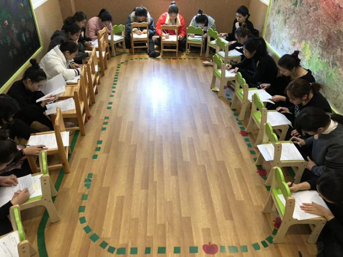 一位好的老師影響孩子的一生,作為早教老師,專(zhuān)業(yè)性就更為重要了。我們?cè)趫@所正式上崗授課的分園老師必須要經(jīng)過(guò)“園所初試”“脫崗培訓(xùn)”“園所實(shí)踐”“考核監(jiān)督”五大步驟,考核通過(guò)后才有資格成為一名正式的早教持證上崗老師。