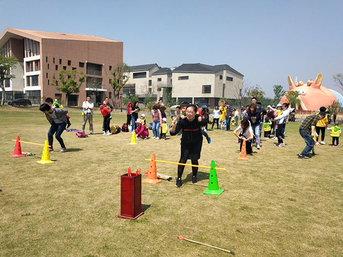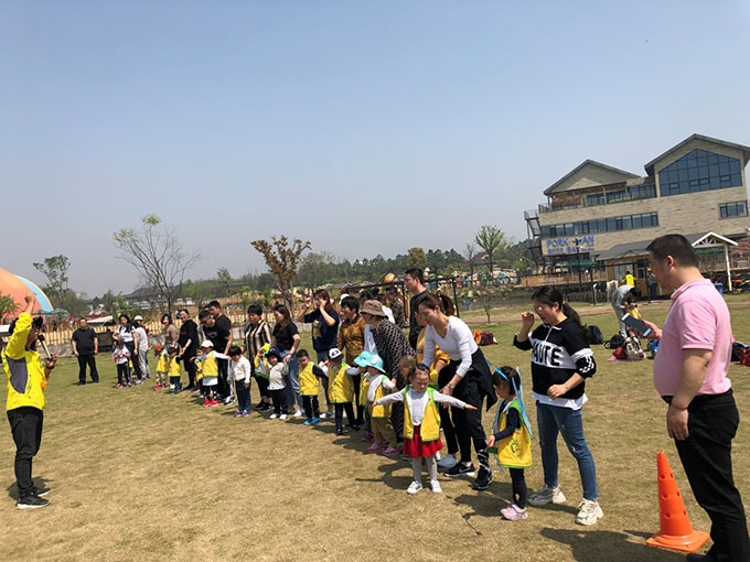 第一站我們一起來(lái)到了大草坪上跟著體能叔叔一起玩親子游戲。
