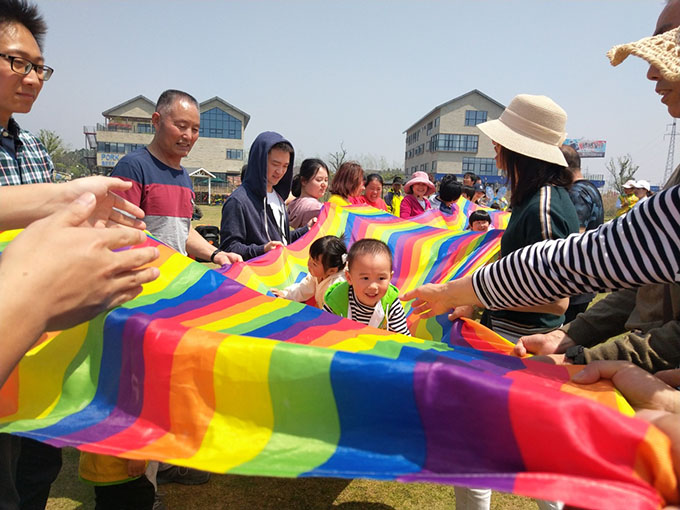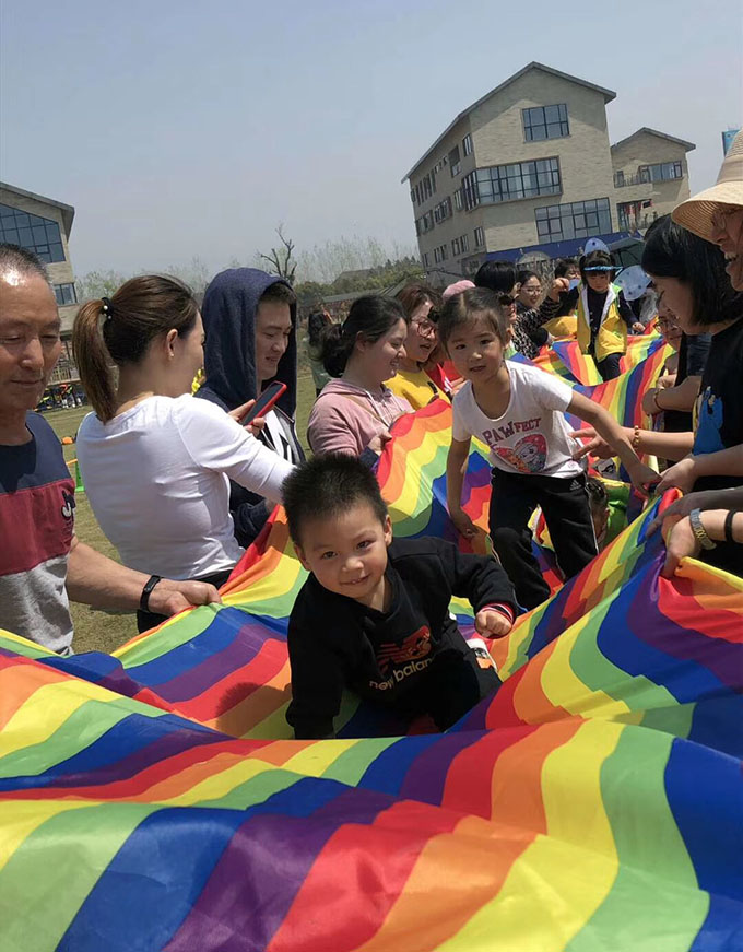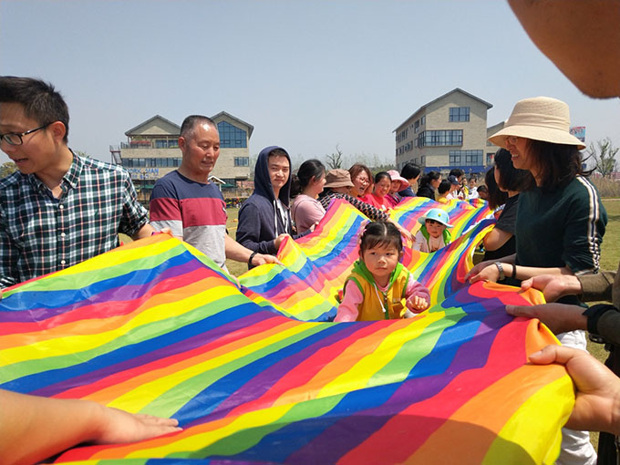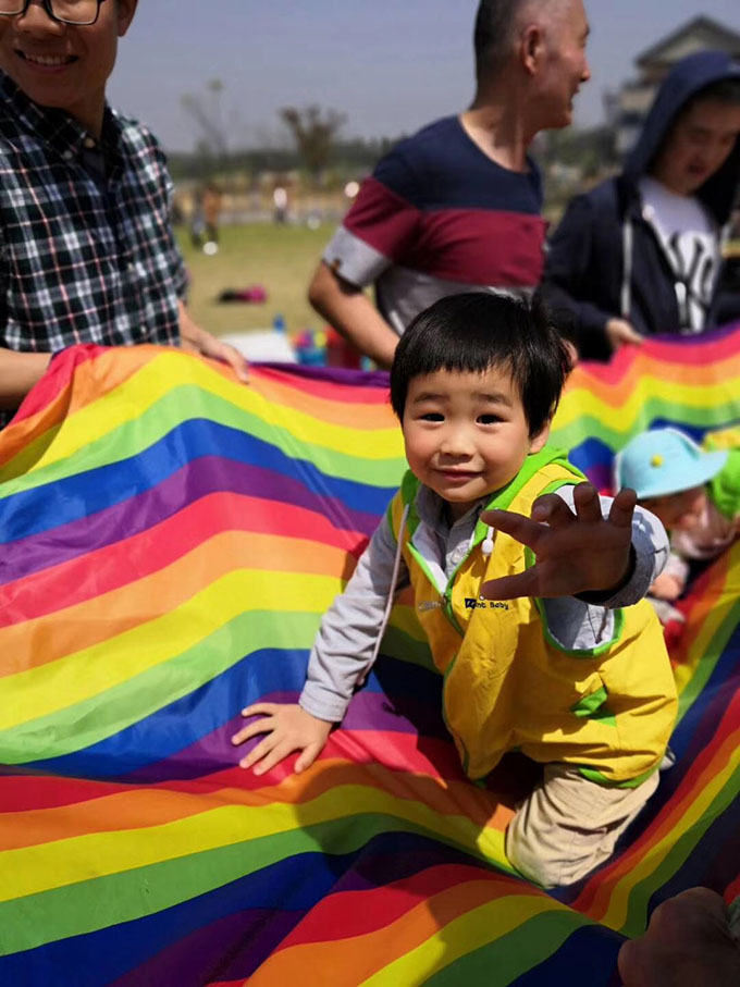 快來(lái)看哪,家長(zhǎng)們一起合力搭起了“空中彩虹橋”,寶貝們都非常勇敢的向前爬行。