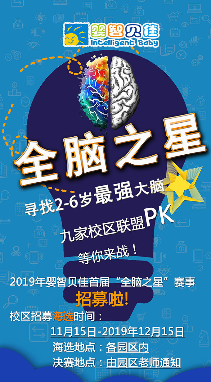 "全腦之星"·錦標賽是由“平衡教育”的倡導(dǎo)者和踐行者:嬰智貝佳品牌發(fā)起,聯(lián)合上海九大校區(qū)聯(lián)盟PK,尋找2-6歲最強大腦。