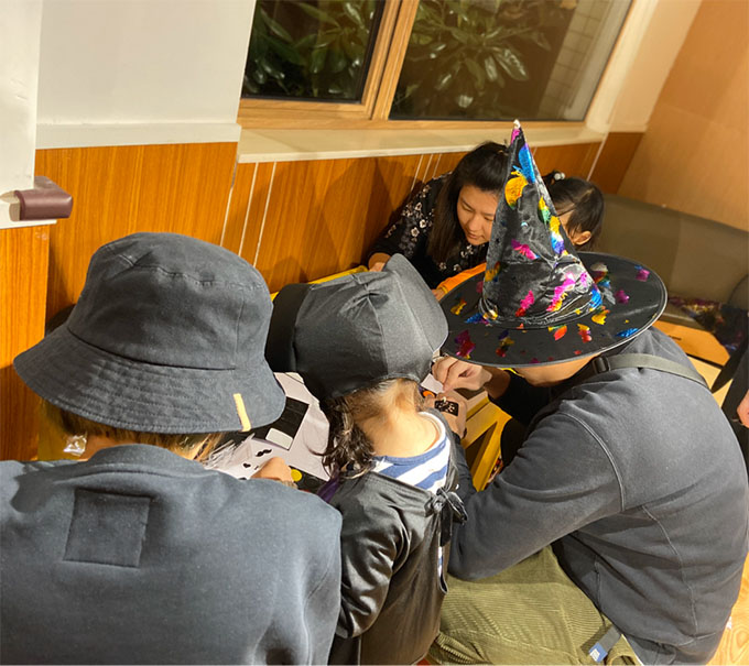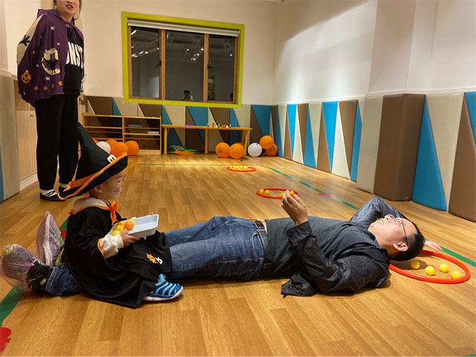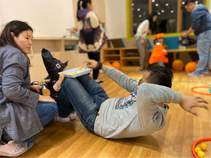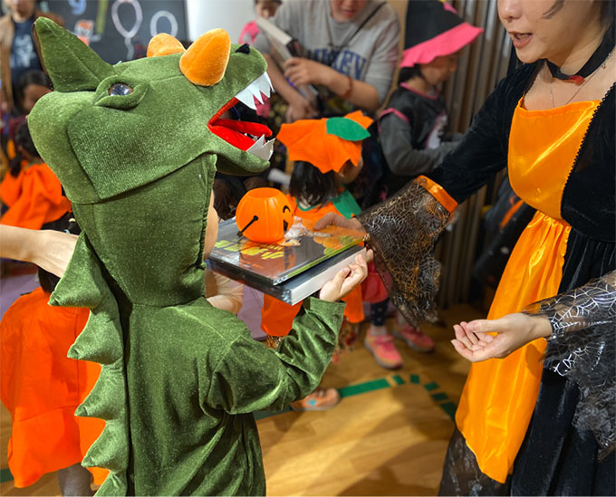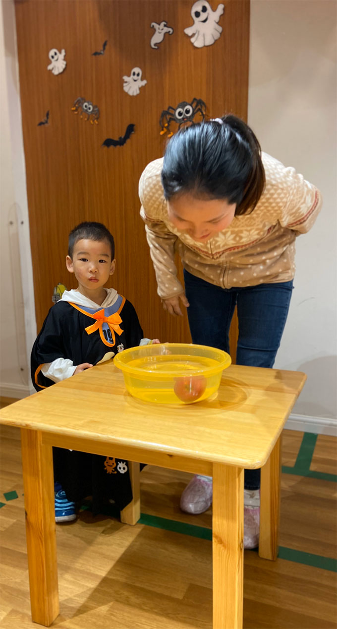 在狂歡正式開始之前有兩個挑戰(zhàn)小游戲——“拯救南瓜”和“精靈悄悄話”,為了贏得獎品小朋友們也積極參與。