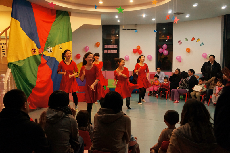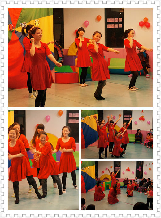 所有老師身著紅色,熱情演繹著《加油操》。