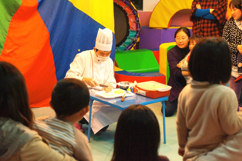 到了DIY時間了,首先糕點師在示范怎樣使用那些糕點用具。