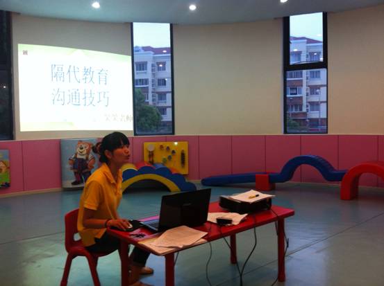 本次講座的主講人是萬科園高級教師笑笑老師。她主帶啟蒙、奧爾夫音樂課程,擁有5年教齡的她在親子教育與家庭教育方面頗有心得。借此機(jī)會笑笑老師也是和爺爺奶奶交流的同時把一些自己的經(jīng)驗和理論分享給他們。