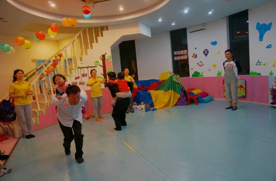 家長(zhǎng)互動(dòng)游戲:甩乒乓球。