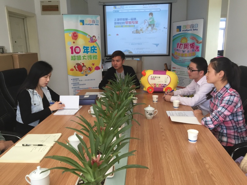 10月22日下午17點(diǎn)于嬰智貝佳公司總部召開(kāi)2014年度第三次園長(zhǎng)教研會(huì),會(huì)議長(zhǎng)達(dá)3個(gè)小時(shí)。此次參與者除了各園長(zhǎng)和園助,還有公司執(zhí)行人事。