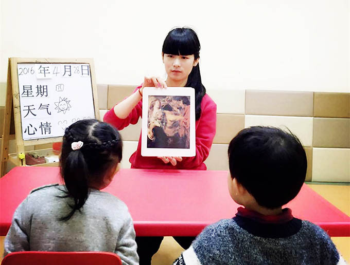 全腦開發(fā)還利用圖像卡片讓孩子們發(fā)揮自由的想象空間,將卡片串聯(lián)成一個個繪聲繪色的情景故事。在鼓勵孩子自由聯(lián)想的同時培養(yǎng)孩子們自信心,大膽表達(dá)各自想法。這是培養(yǎng)連貫的語言能力的有效途徑。