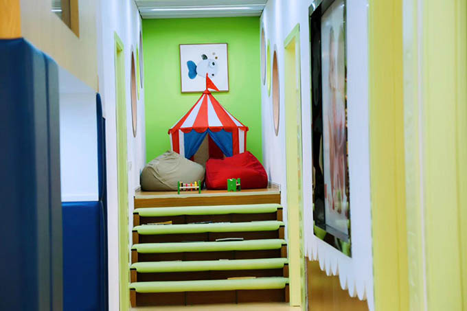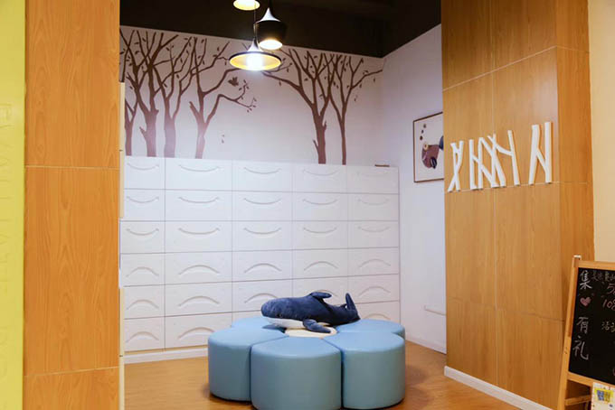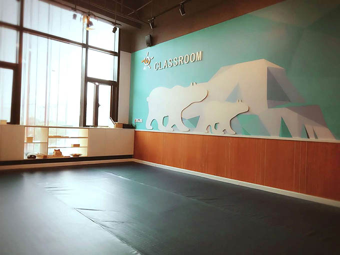 下面就是親子互動(dòng)教室啦,以后的親子課程都會(huì)在這里哦。簡(jiǎn)單大方的設(shè)計(jì),對(duì)寶寶的專(zhuān)注力會(huì)有很好的培養(yǎng)。