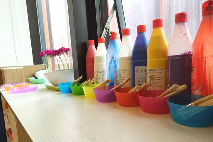 第二個(gè)就是顏料區(qū)域,多彩安全的顏料讓寶寶藝術(shù)的天堂自由的翱翔。還有就是手工階段,充分培養(yǎng)寶寶的動(dòng)手操作與創(chuàng)造力。